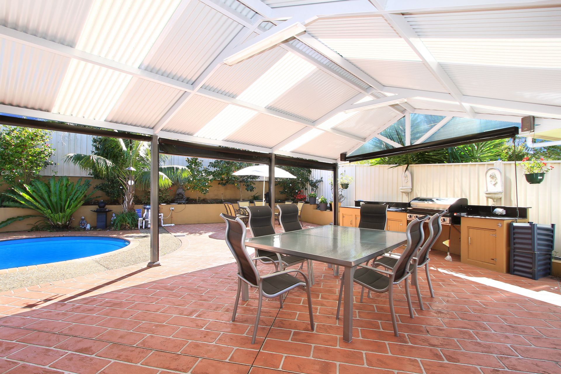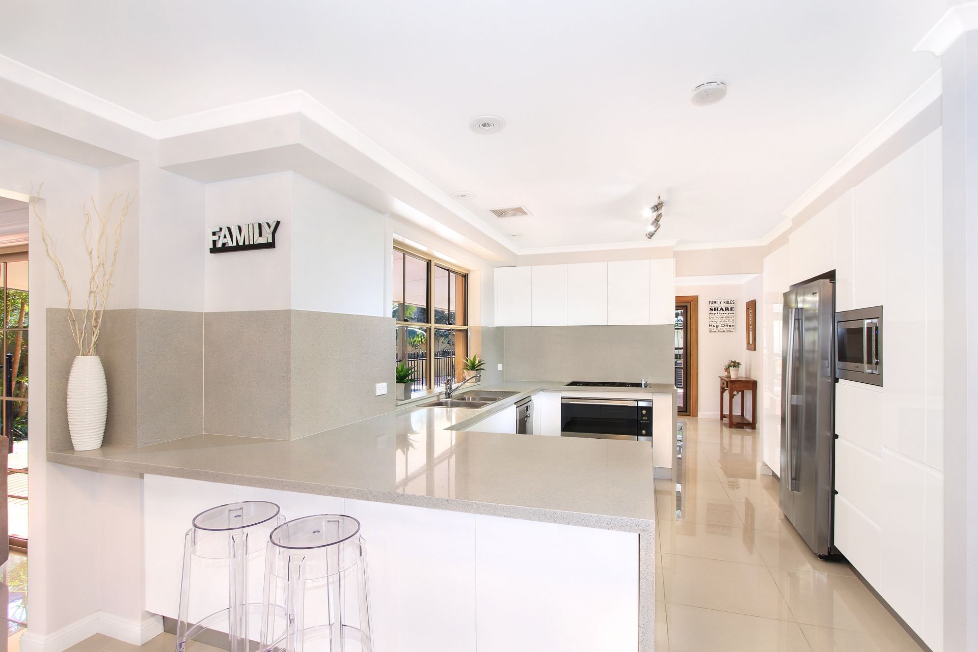 Freshly updated and renovated interiors form a selection of spacious living and dining areas ideal for both formal and informal family occasions. The home is seamlessly designed, embracing indoor/outdoor all-weather entertaining, with all living and dining spaces opening onto a large, covered wrap-around balcony and oversized entertainment area complete with outdoor barbeque and kitchenette. Inside a well-designed, sleek CaesarStone and polyurethane kitchen is equipped with gas cooking appliances, ample bench space and storage providing for enjoyable home cooking experiences.