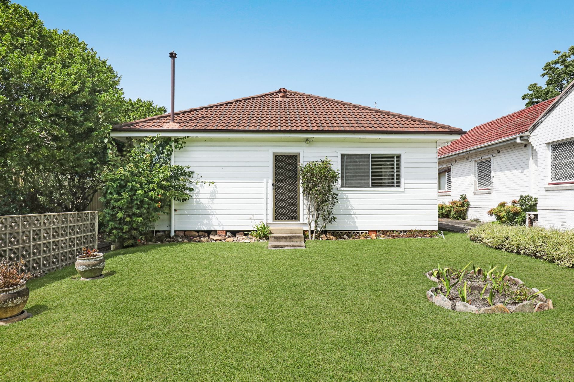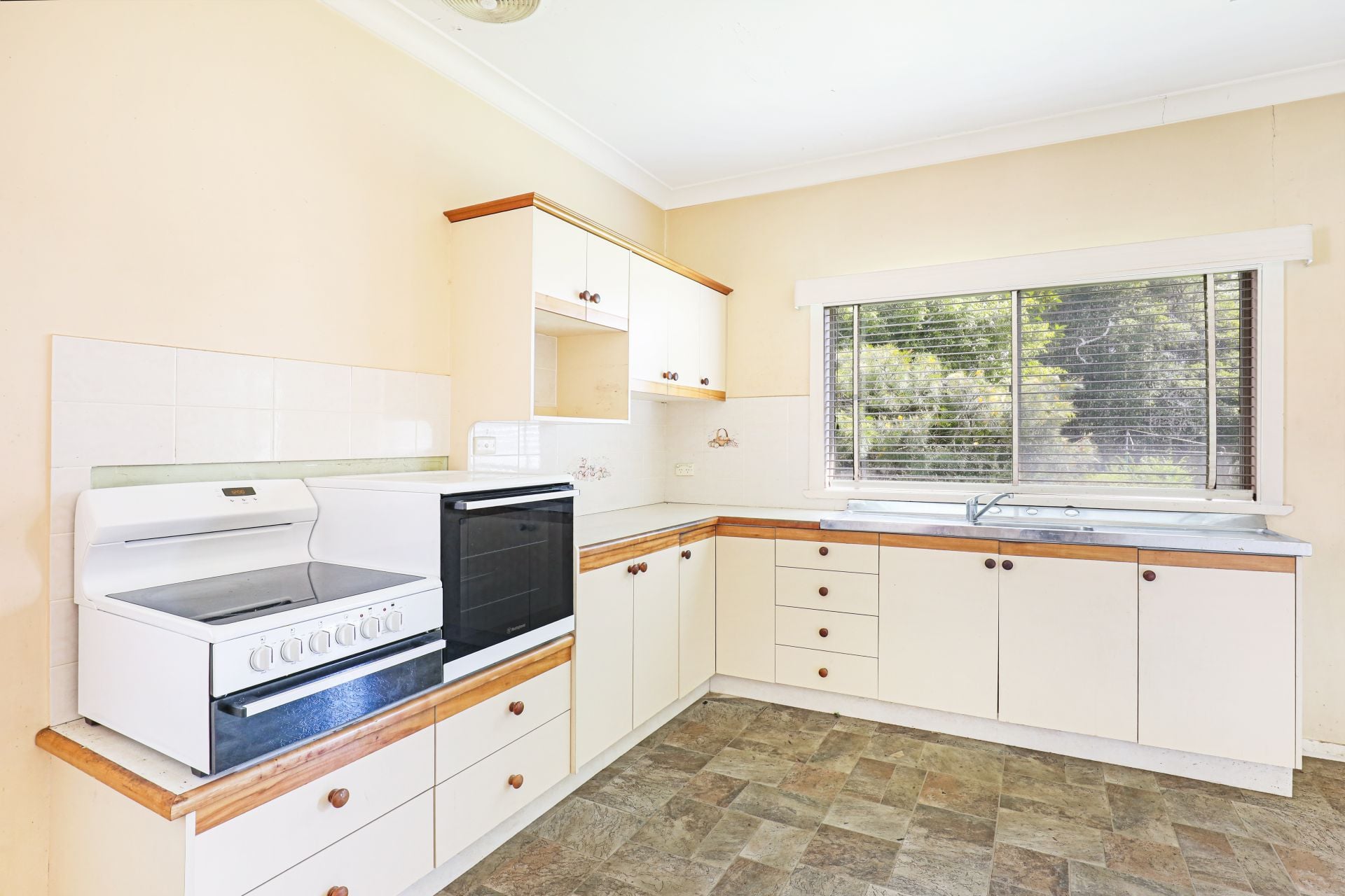 Inside, the home remains true to its era, offering two well-sized bedrooms, separate living and dining zones, a central bathroom, and a practical kitchen footprint ready for reinvention.