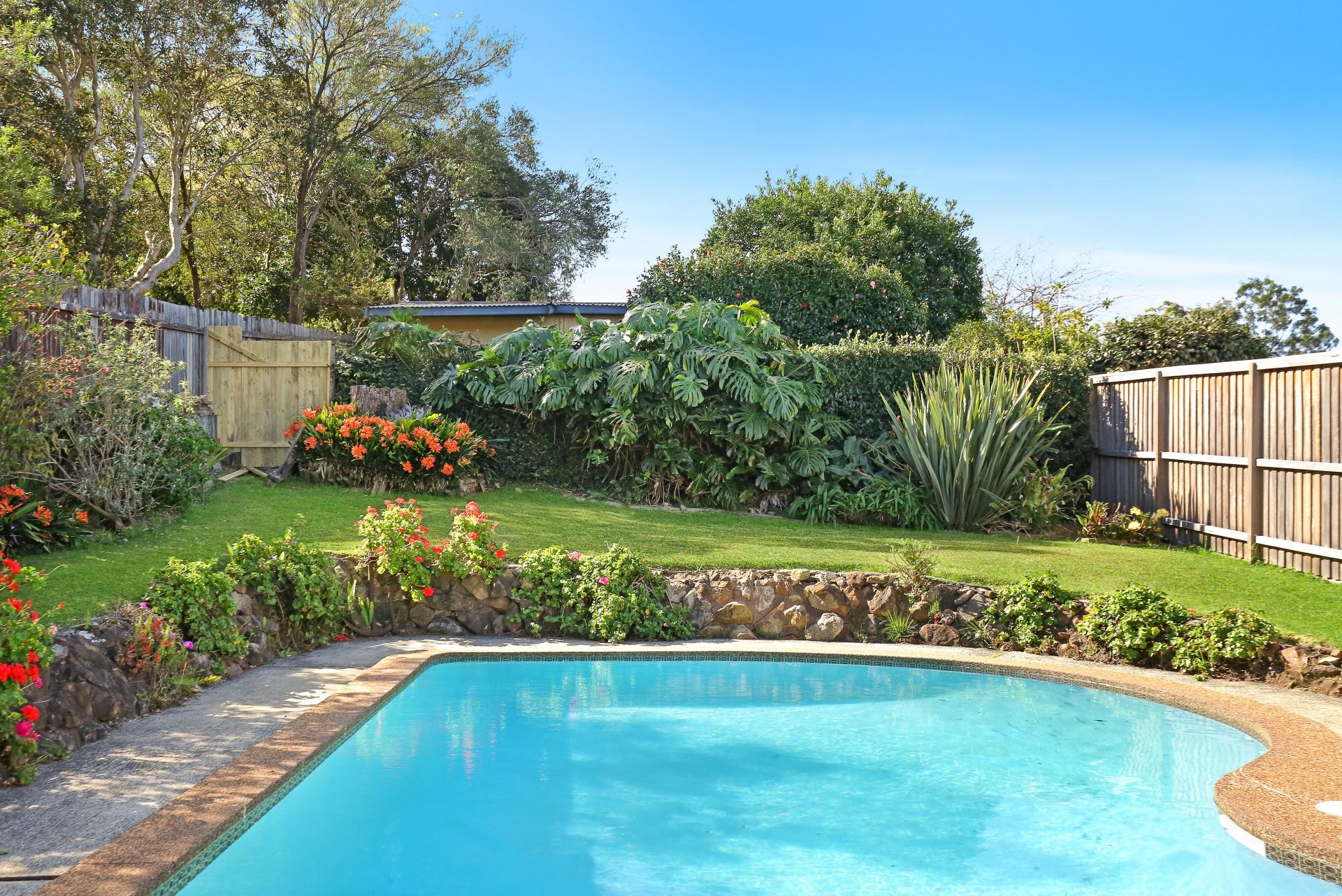 * Covered entertaining area overlooking pool
