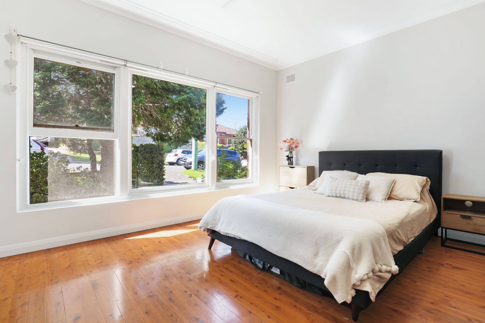 Flooded with northern light and framed by leafy surrounds, the property features three oversized bedrooms, all appointed with built-in wardrobes and ceiling fans, alongside a renovated kitchen finished with stone benchtops and premium stainless-steel appliances. Multiple living zones, including a formal lounge and open-plan dining, flow seamlessly to an elevated outdoor entertaining deck overlooking child-friendly lawns.