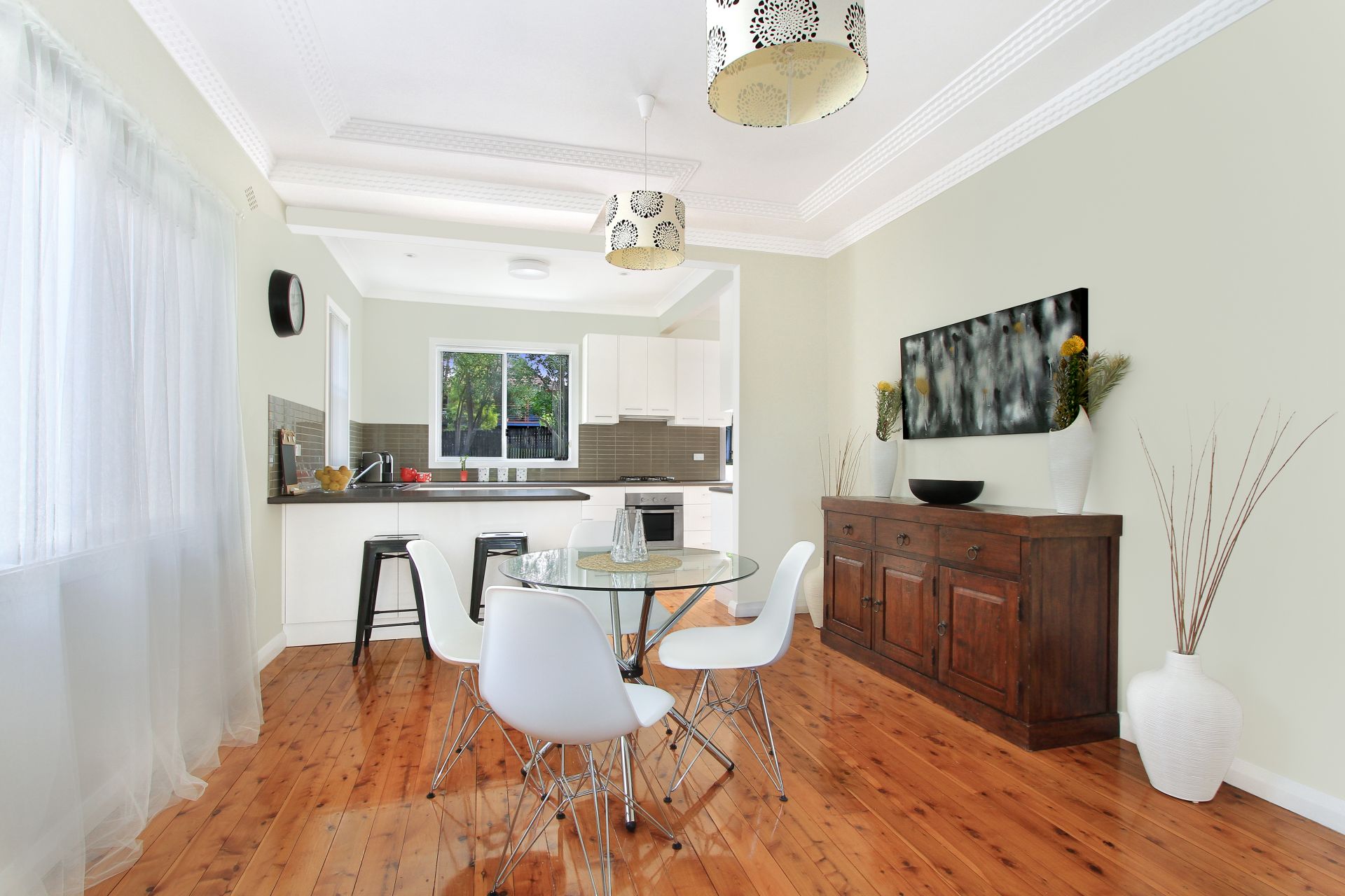 Enjoy the seamless flow of the light filled living and dining areas, enhanced with polished timber floorboards and ornate ceilings, through to the modern kitchen fitted with stainless steel cooking appliances and boasting loads of cupboard and storage space.