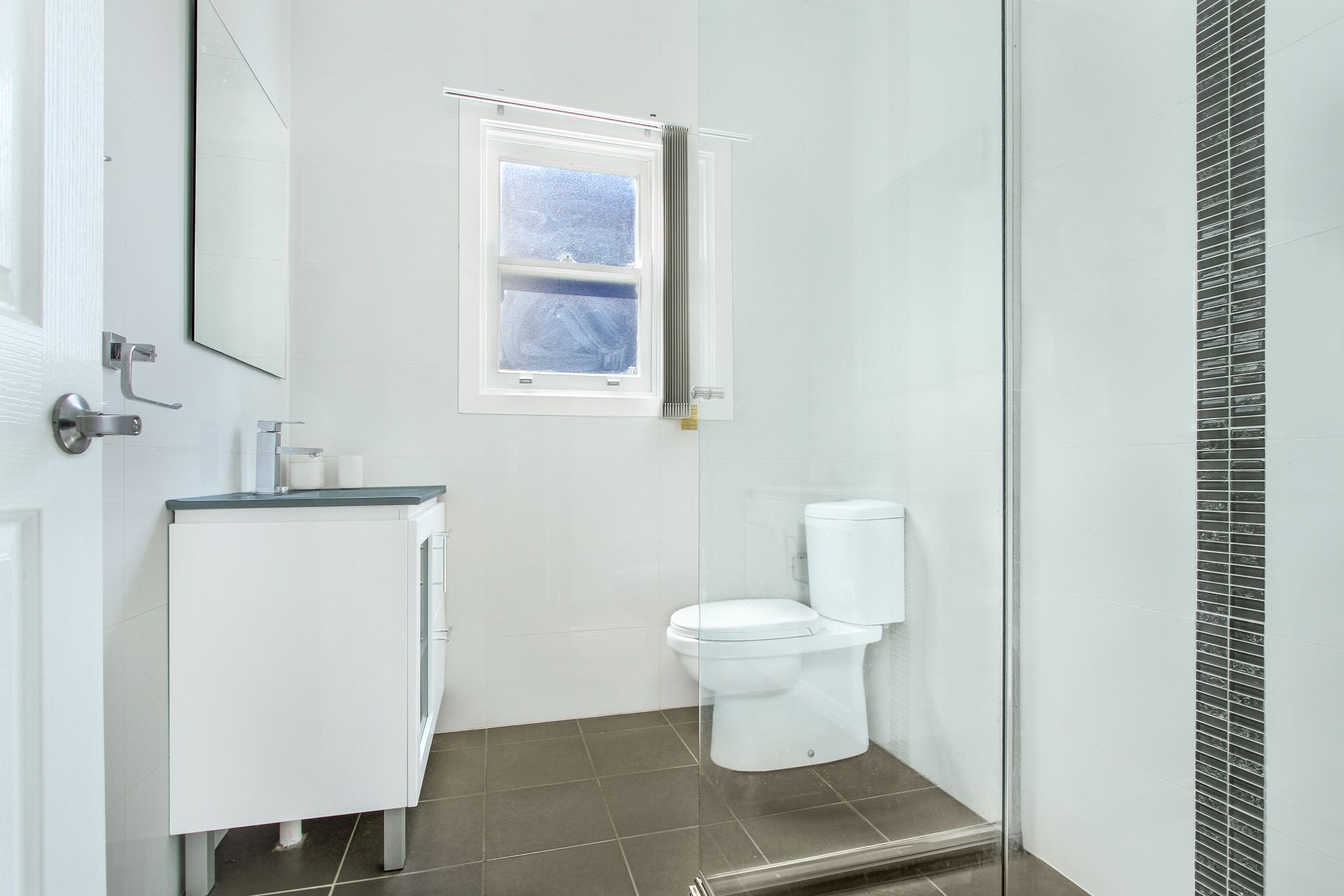 The updated bathroom has been designed using chic white and chrome hues and both bedrooms are generously sized, complete with built in wardrobes.