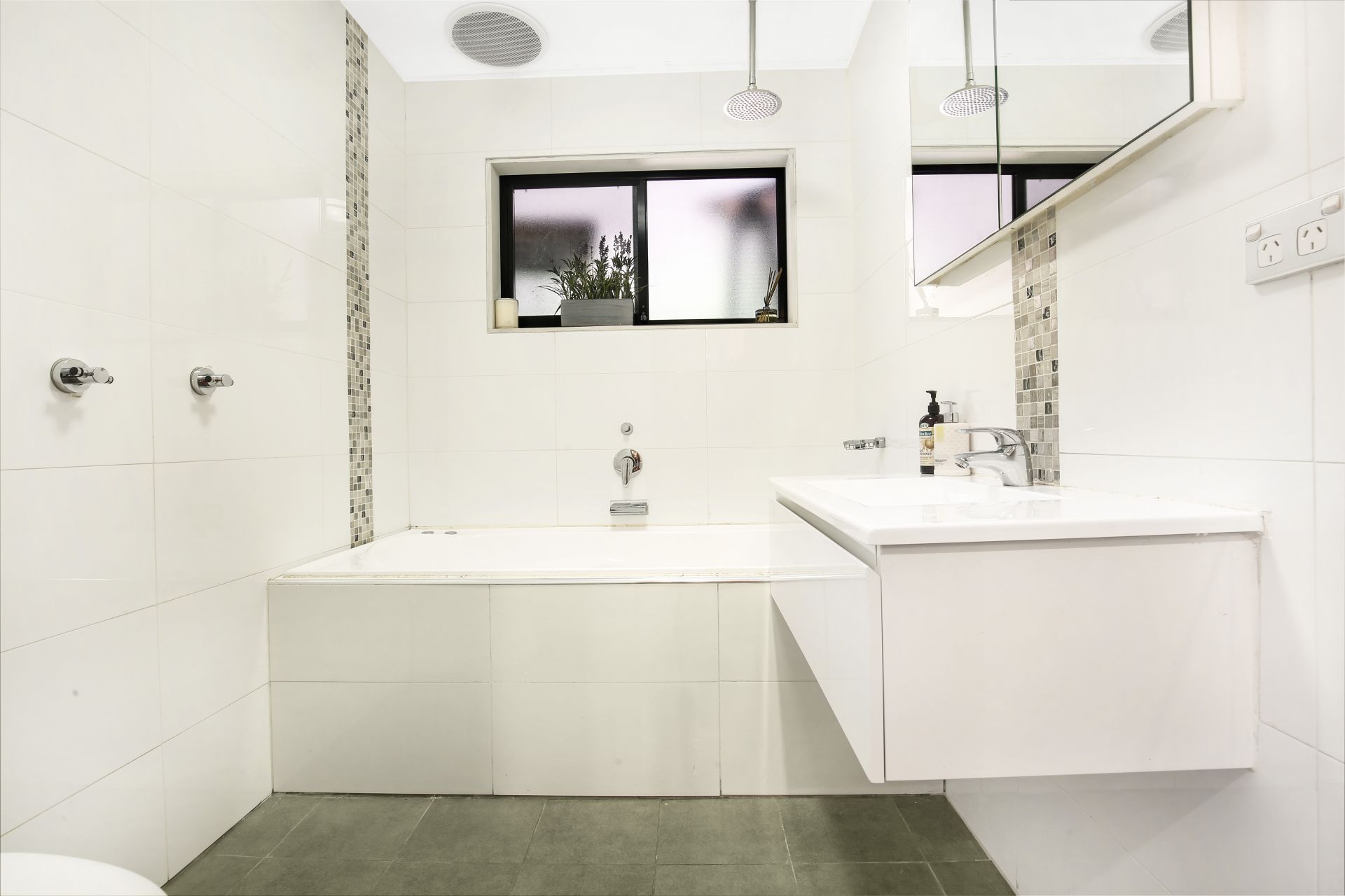 Down the stairs the yard is large enough for a game of backyard cricket.