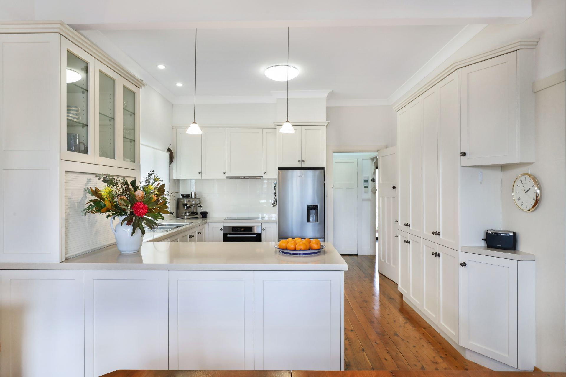 Elevated from the street, this home has functionality and practicality at the heart of its design brief. Entering the home, you are greeted by polished timber flooring and a sense of light and space as you walk through to the open plan kitchen, dining, and family living zone.