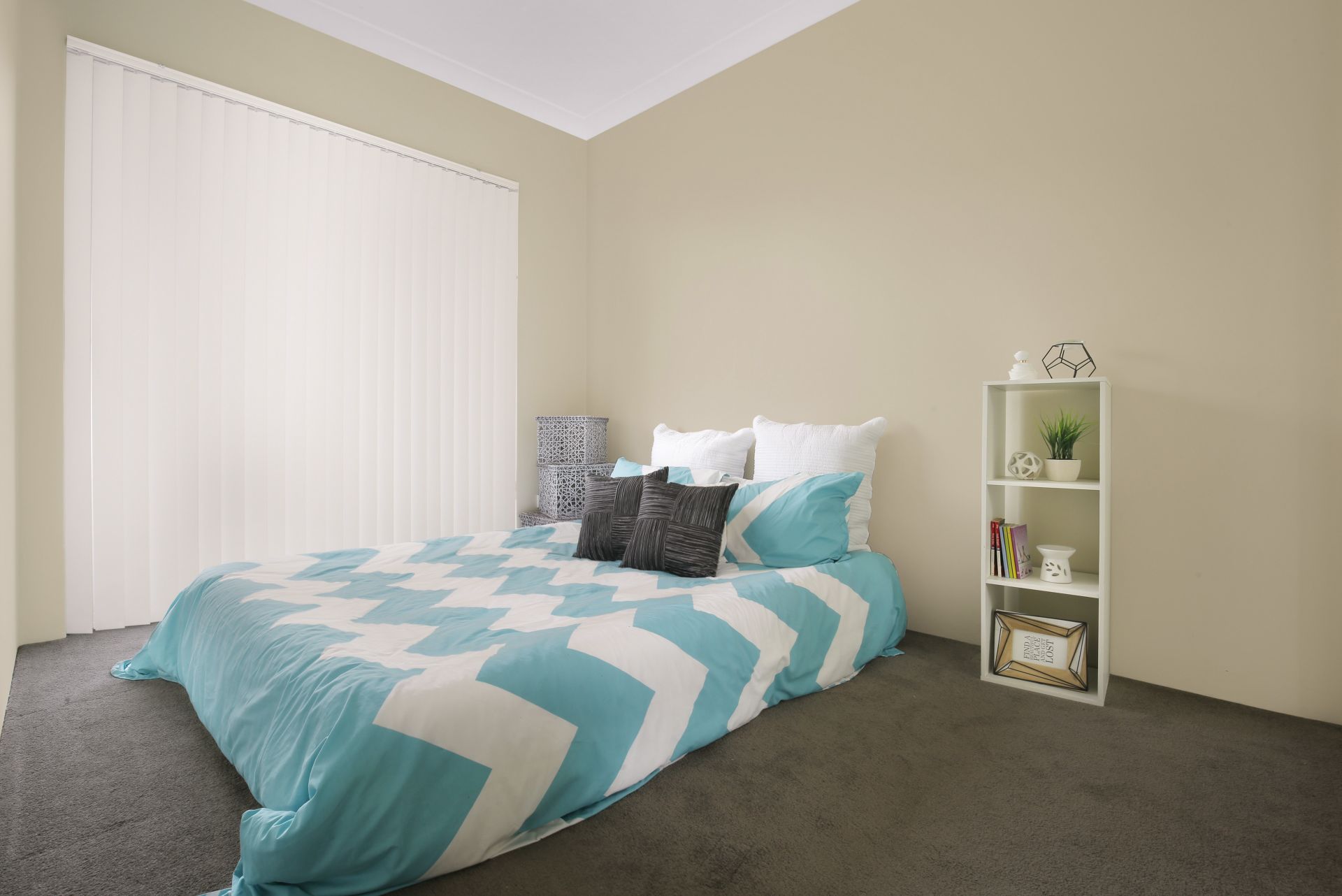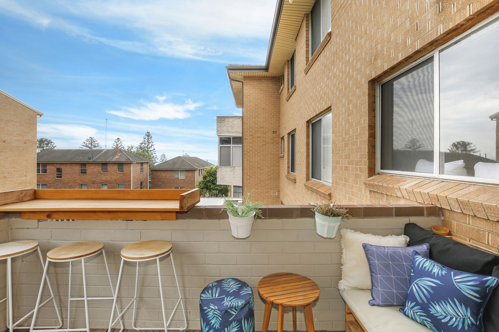 The bedrooms are cleverly positioned on either side of the living area for added privacy, both have built-ins and a balcony off the west facing bedroom adds to the natural light.